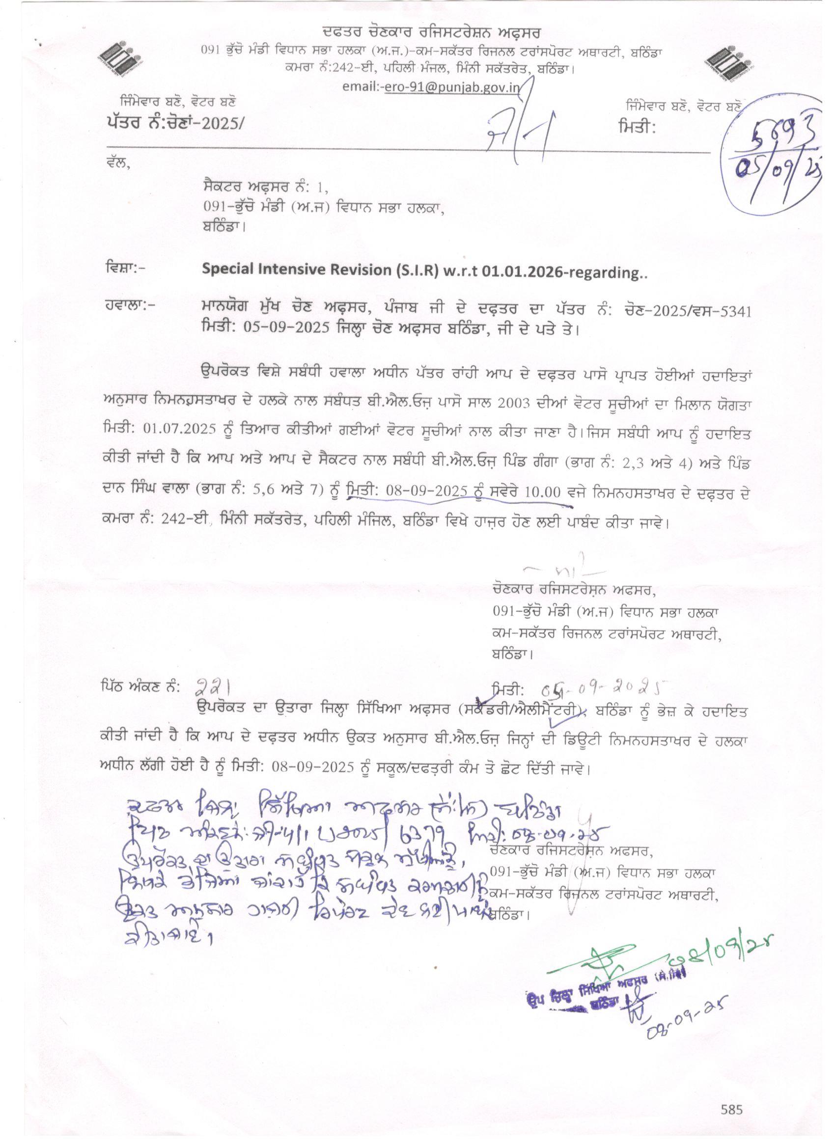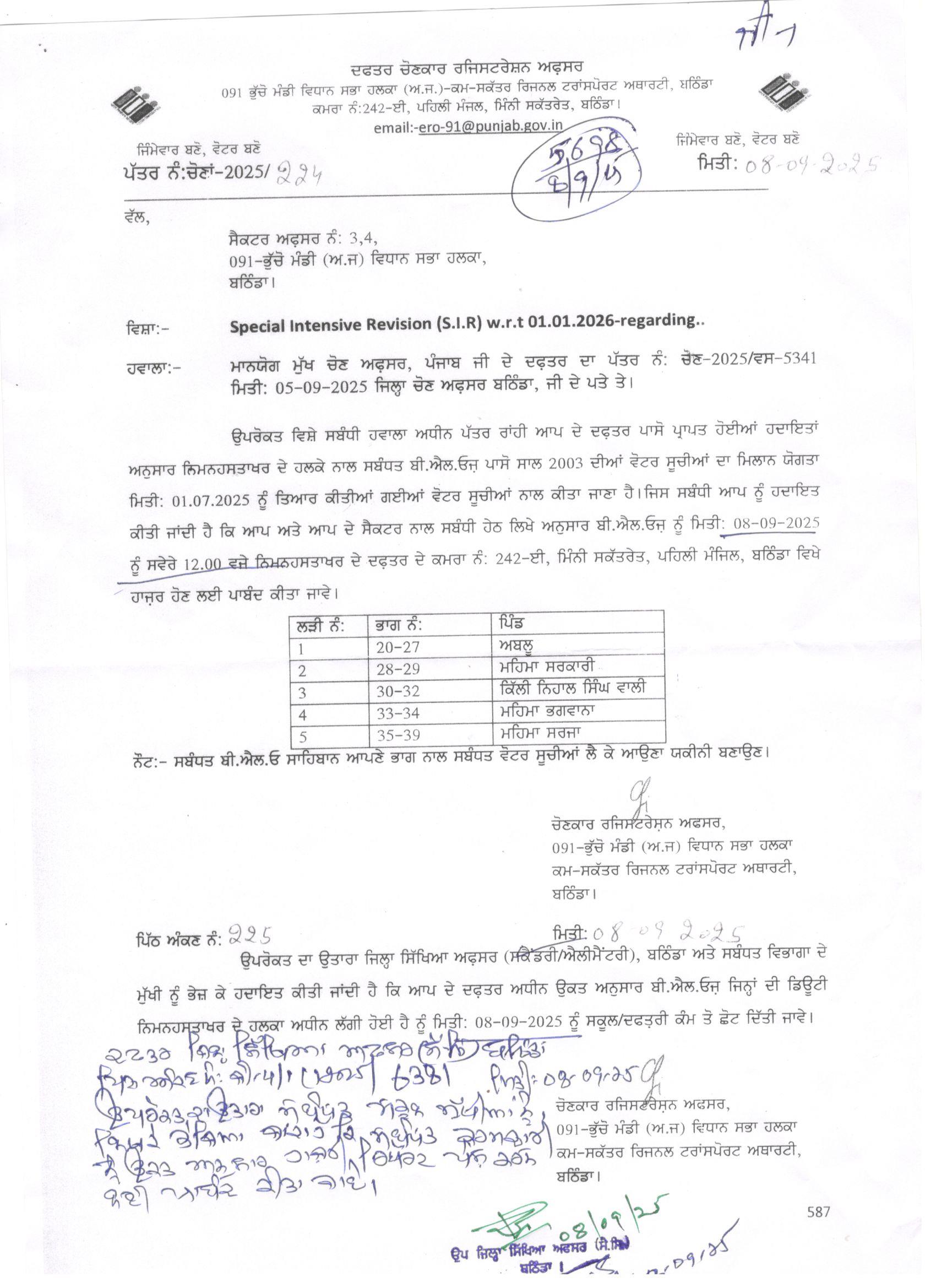 Reg. Special intensive revision 91 bhuchoo mandi |